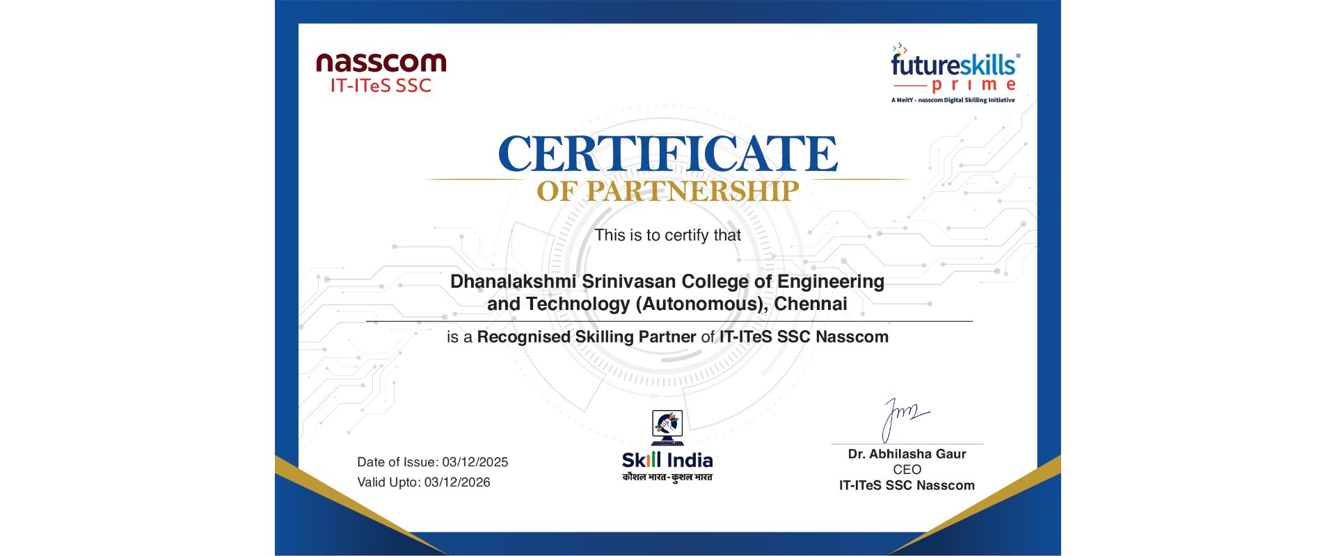 Dhanalakshmi Srinivasan College of Engineering and Technology (DSCET) is where knowledge inspires innovation and ideas transform into meaningful solutions. The institution nurtures creativity, academic excellence, and practical learning, empowering students to think boldly, innovate confidently, and grow into skilled professionals ready to meet real-world challenges.